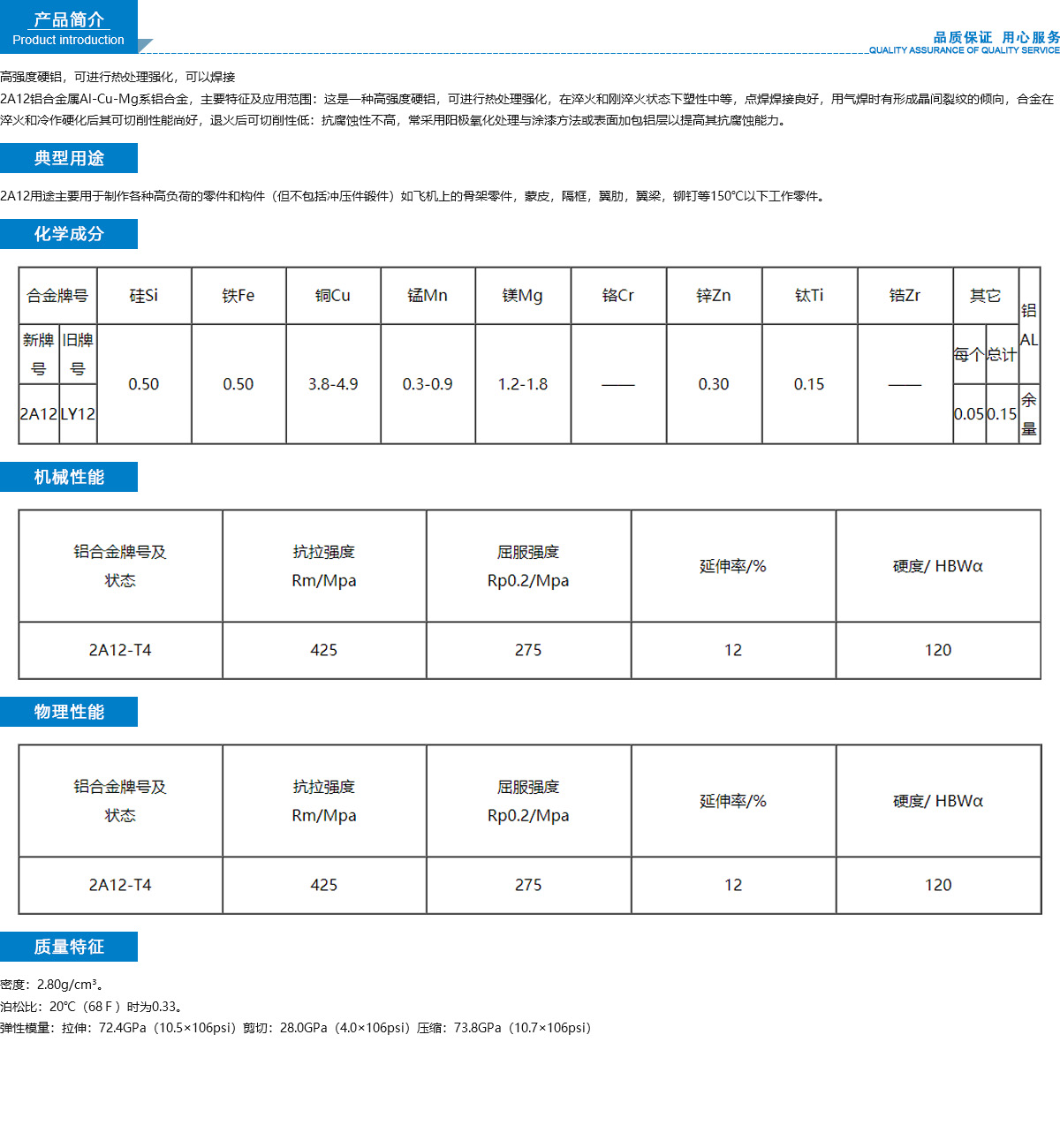 山东伟旺金属有限公司销售各种规格,厚度的2A12铝板产品,宽生产2.8米,小规格可以定制,有金属锯床可以切割。我公司产品的力学性能和化学成分均执行国标,起订量低,价格合理,改产品属于压延热轧板材,适合于阳极氧化加工,是国产2A12的优质供货商。